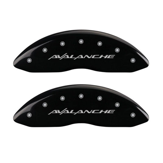 Load image into Gallery viewer, MGP 4 Caliper Covers Engraved Front & Rear Avalanche Black finish silver ch